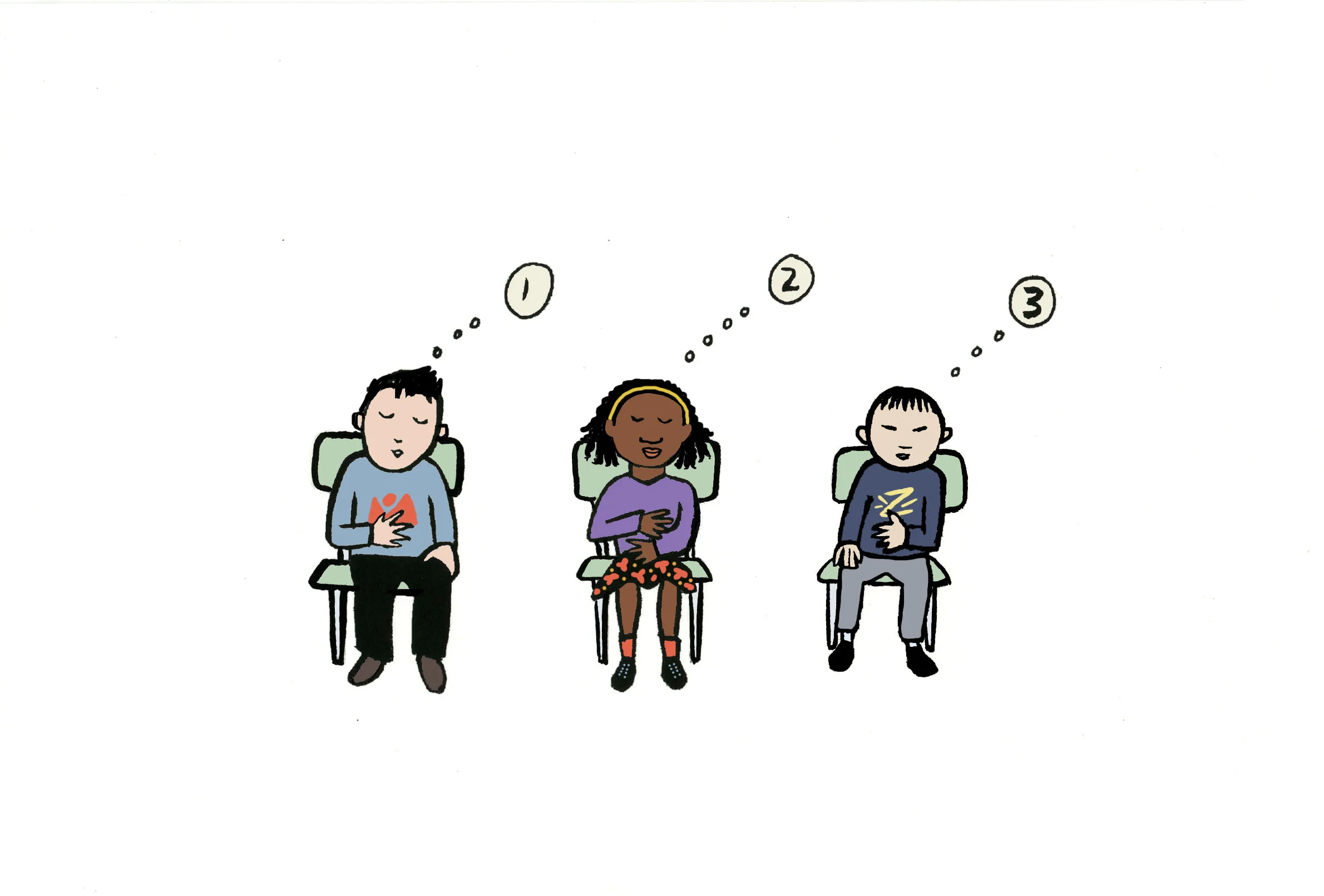 We practice focusing by slowly moving our arms up and down, or back and forth, in sync with each other’s movements.
